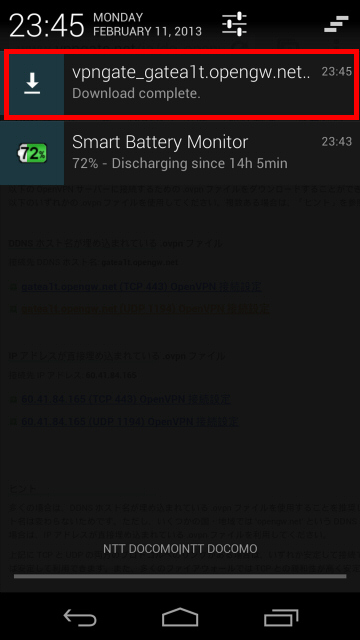 你也可以在你的电脑打开 公共 VPN 中继服务器列表页面,下载一个.ovpn 文件,在邮件里附上它发送到安卓。